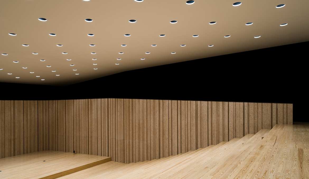 the building is organised around a large cloister plateau located in the university campus, providing an outdoor area where small concerts are improvised. to deal with the aggression of the acoustic environment, the building was studied to protect the school from noise due to its strong presence in the urban context. the north side of the volume is arranged in two levels, to provide an acoustic barrier to the cloister, while allowing for outdoor classes in the sun. the slope in the roof allows the creation of spaces of varying height, taking into account the particular specificities of each musical instrument. the school is organised in a spiral of strong dynamic impulse, which opposes the serenity of the cloister.